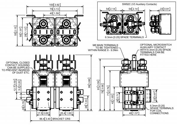 SW95的特点是单极双重断开主触点,银合金尖端,耐焊接,耐磨损,并具有优异的导电性。 SW95具有M8螺栓主端子和6.3mm的黑色线圈连接。 通过M4螺纹孔或安装支架进行安装,或者提供安装,或作为单独的物品。 安装可以是水平或垂直的,垂直时M8接触螺栓应该朝上。 如果要求向下定位,我们可以调整接触器来补偿这一点。
